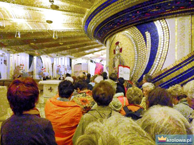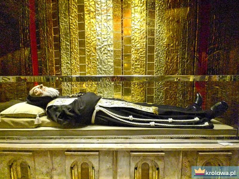 Krypta kojarzy się zwykle z przemijaniem, smutkiem, zadumą. Tam jest inaczej! Wchodząc do wnętrza, oczom naszym ukazuje się blask płynący jakby z zalanego słońcem nieba. Dzieje się tak dlatego, że całe sklepienie krypty wyłożone jest złotą mozaiką, symbolizującą miejsce przebywania mieszkańców Nieba. Wywołuje to nieodparte wrażenie przeżywania, za przyczyną niestrudzonego szafarza Bożego Miłosierdzia, najpiękniejszego poranka, jakim jest poranek Zmartwychwstania, zaślubin życia z odwieczną Miłością, w towarzystwie świętych i zbawionych… Tak, to chyba jedyne na świecie miejsce, gdzie można doświadczyć rąbka Ojczyzny, którą osiągnął już o. Pio.