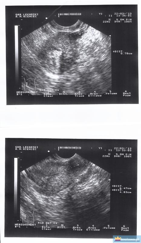 Wysyłam zdjęcia USG. Pierwsze z polipem z dnia 22 marca 2013 r. oraz drugie z 10 kwietnia 2013 r. bez zmian chorobowych. Dodaję jeszcze skierowanie do szpitala z 22 marca 2013 roku i opis lekarza na odwrocie USG. –Małgorzata